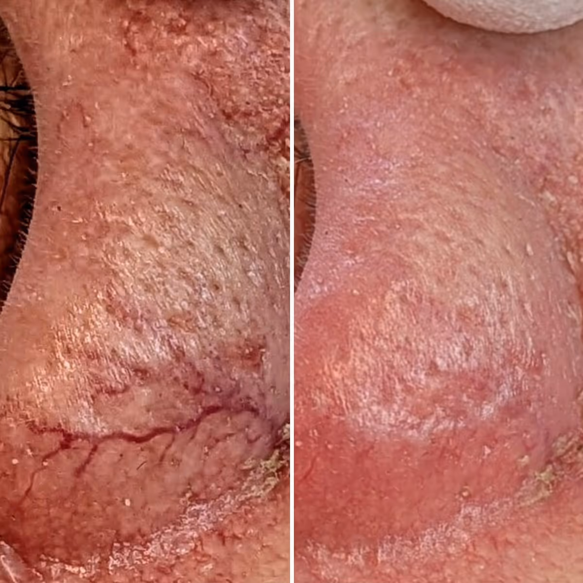 Minimal. Viss rodnad eller svullnad kan förekomma men löser sig normalt inom några timmar. Patienten kan återgå till vardagen direkt.